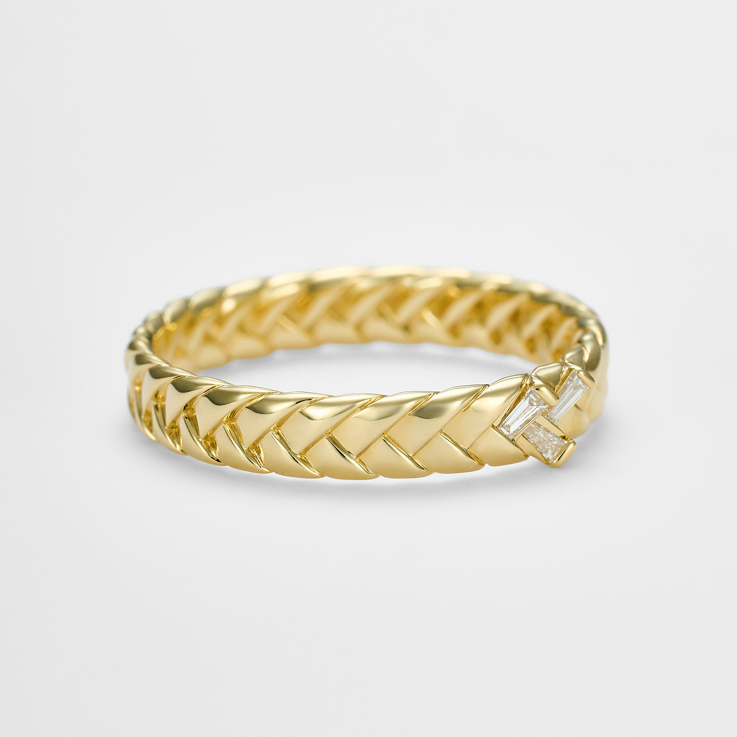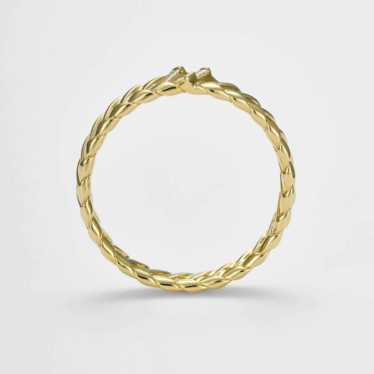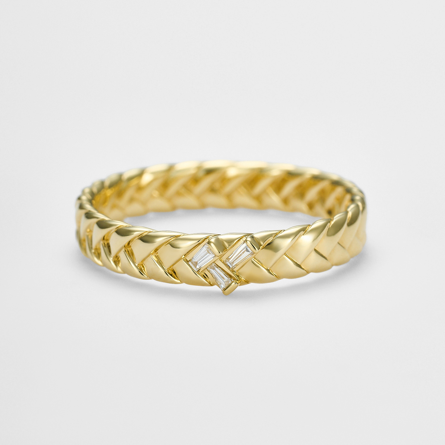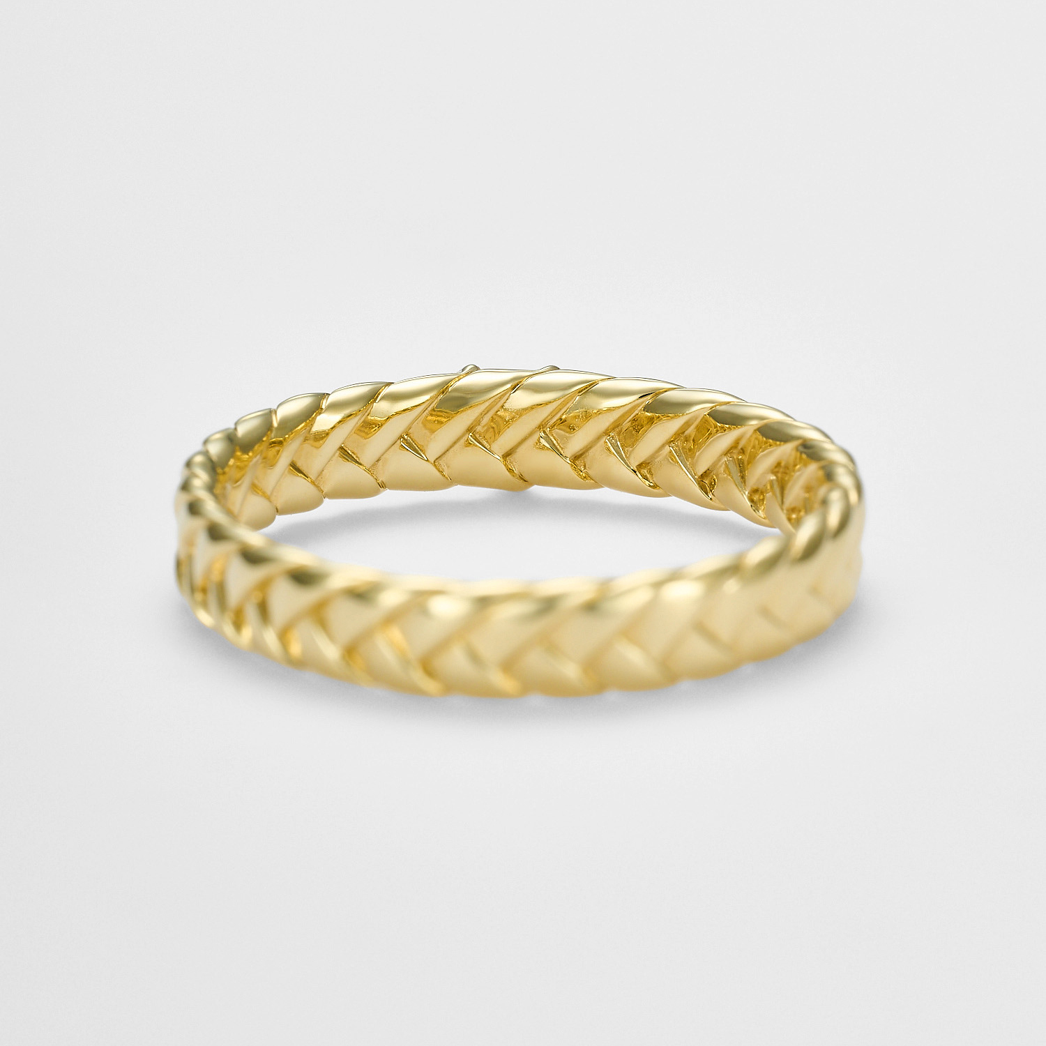 イエローゴールドの素材が、編み板をカジュアルに転ばない強さとエレガントに仕上げます。