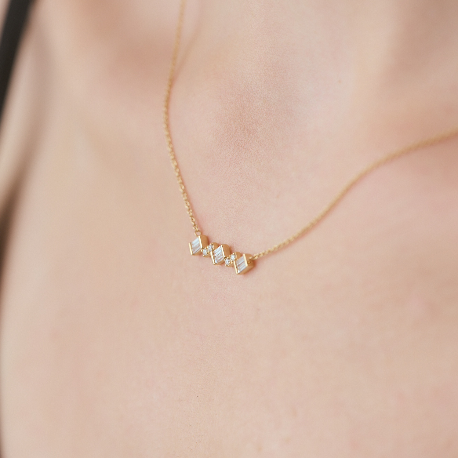 「ベルシオラ」の原点、構築的で知性的な美を解きほぐし、再構築したネックレス。