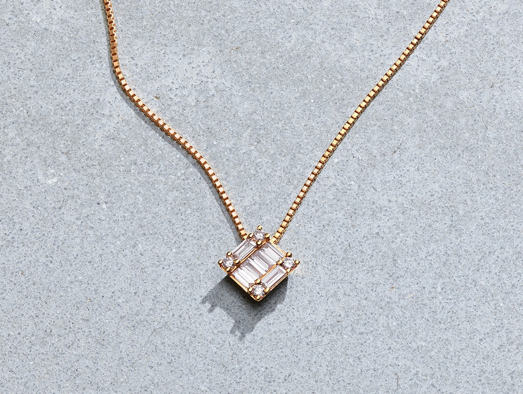 テーパーバゲットダイヤモンドを端正に美しく配した「ライン」コレクション